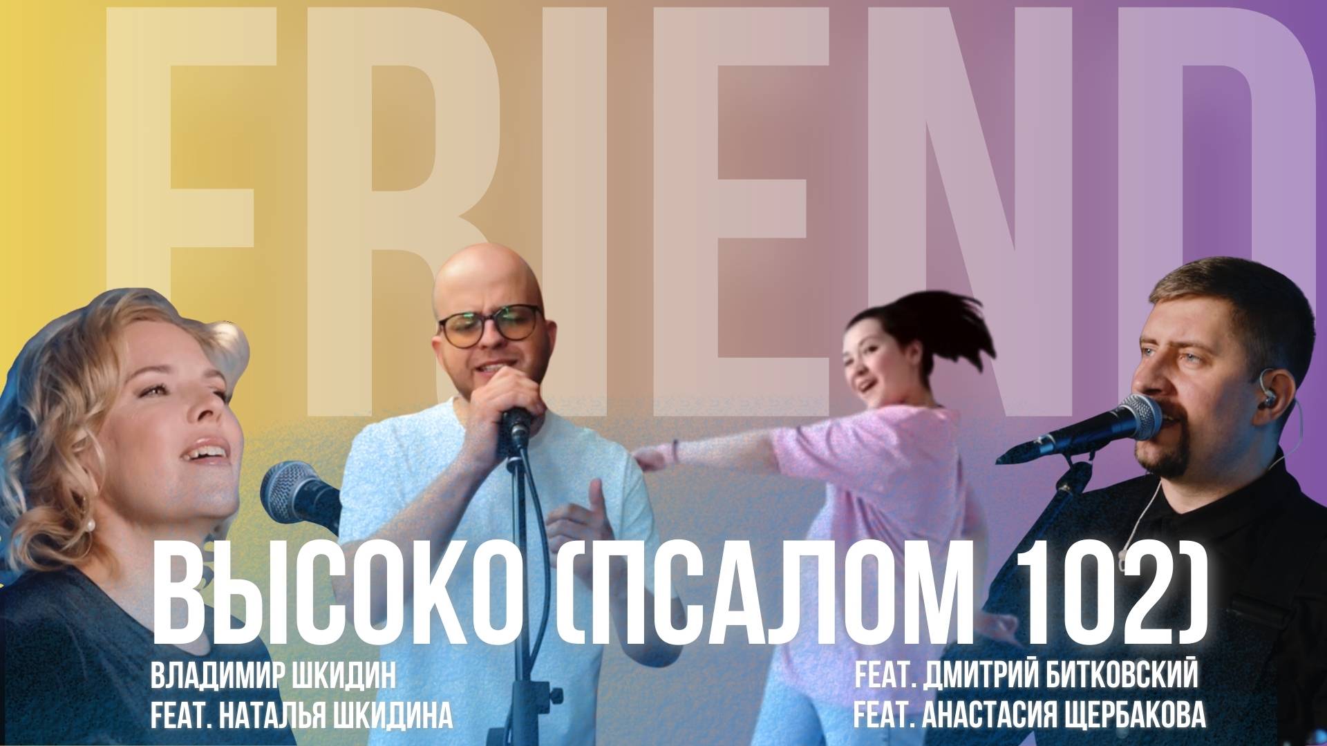 #новаямузыка #прославление#новаямузыка #прославление #прославление #worshipmusic #music #friend #прославление #поклонение #новаямузыка #music #премьера #worshipmusic #soakingworshipmusic #владимиршкидин #friends #christianmusic #gospelmusiclatest Дорогие друзья. Больше года мы трудились над записью новых песен проекта Friend. Совместное творчество это прекрасная возможность для общения и дружбы. Каждый привнес в песни свои идеи, навыки, краски. Голос нашего поколения должен прозвучать, провозгласить то, чем мы живем! География участников обширна: Москва, Санкт-Петербург, Екатеринбург, Челябинск, Новосибирск, Ачинск, Красноярск. Участники проекта: Владимир Шкидин - вокал, аранжировка. Наталья Шкидина - вокал. Дмитрий Битковский - вокал. Анастасия Щербакова - танцы. Максим Притчин - гитары, аранжировка. Илья Поляков - ударные, бас-гитара. Даниил Балашов - клавишные. Александр Худяков - запись, сведение. Владимир Каратаев - видеосъемка, монтаж. Высоко (Псалом 102) Музыка: Владимир Шкидин Слова: Псалом 102 1 Щедр и милостив Господь, долготерпелив и мномогомилостив Не до конца гневается и не вовек негодует Не по беззакониям нашим Он сотворил нам Ибо как высоко небо над землей Так велика милость Господня К боящимся Его 2 Господь на небесах поставил престол Свой И царство Его всем обладает Благослови душа моя Бога Крепкого в силе Великого в славе 3 Благословите Господа все ангелы Его Благословите Господа все воинства Его Благословите Господа служители Его Благословите Господа дела Его! Вст С G/H Am F 1 C G/H Am G -2р C G/H Am F (Ибо как высоко) 2 Am Em F 3 F G/H Am G/H F G F/A G/H– последний раз https://rutube.ru/channel/39750553/