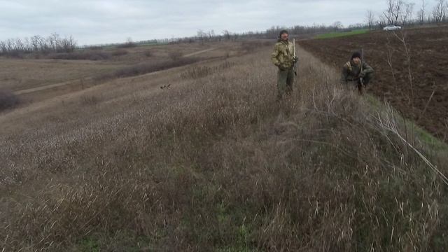 Заяц в пахоте!Сильный ветер!Охота на зайца