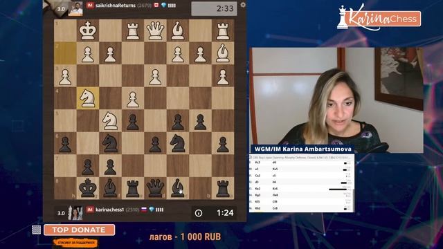 Титульный вторник на chess.com 11 туров 3+1 Поддержать канал: https://www.donationalerts.com/r/karinachess1 Подписаться на мой канал: https://www.youtube.com/channel/UChor8u_hhgrjX2lt0QLzZHA?sub_confirmation=1 Стать спонсором канала: https://www.youtube.com/channel/UChor8u_hhgrjX2lt0QLzZHA/join Рестрим: https://www.twitch.tv/karinachess1 Рада приветствовать Вас на канале женского международного гроссмейстера, международного мастера Карины Амбарцумовой! Я - профессиональная шахматистка и тренер. Здесь вы сможете найти обучающие видеоуроки по шахматам, комментарии турниров, стримы моей игры в блиц шахматы. Подписывайтесь на мои странички в соц.сетях: ВКонтакте: https://vk.com/karinachessclub Twitch: https://www.twitch.tv/karinachess1 Почта для связи: karinachess@mail.ru Поддержать канал: https://www.donationalerts.com/r/karinachess1 Мой сайт: http://chesscoach.ru/