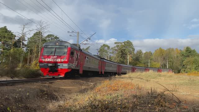Электропоезд ЭД4М-0424 "Карелия", перегон Белоостров - Сестрорецк, г. Санкт-Петербург (октябрь 2025г.)