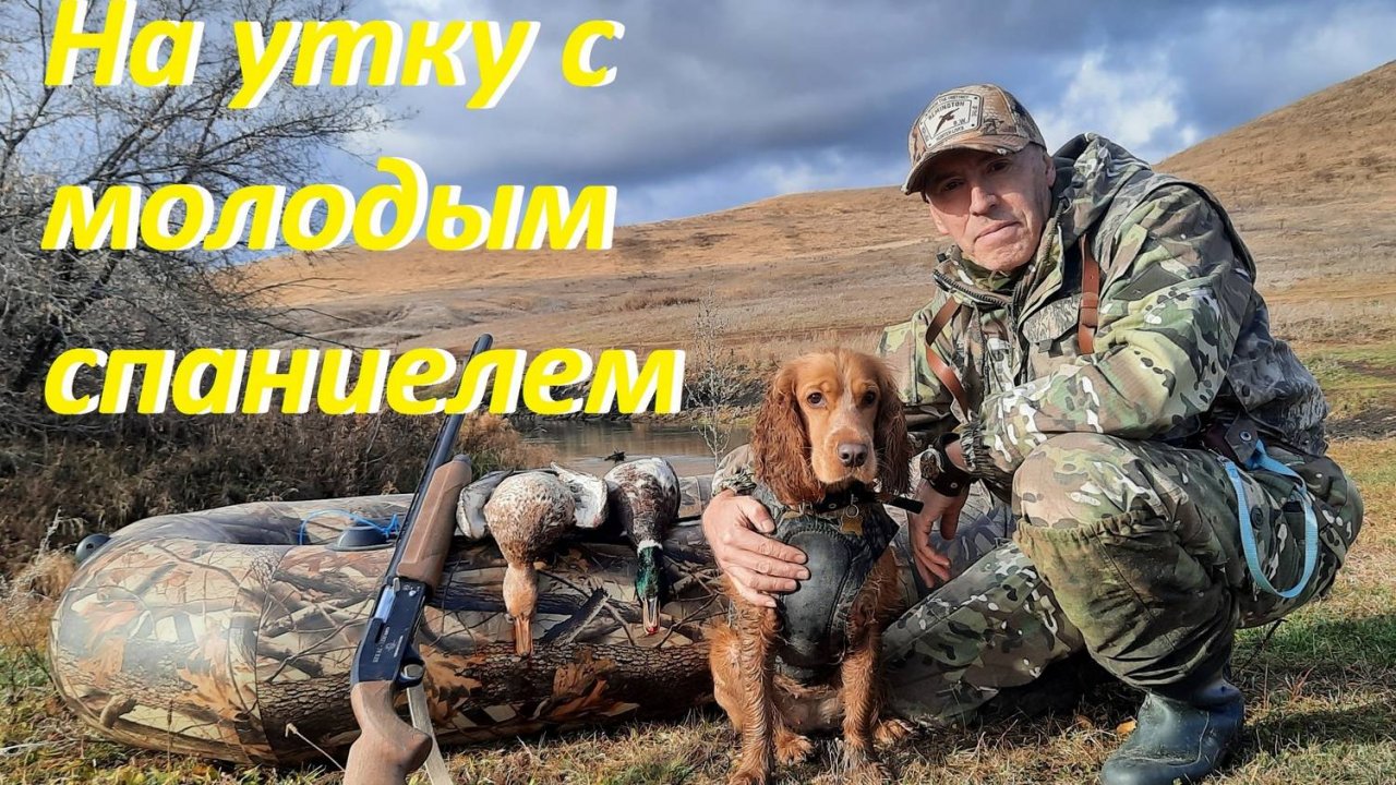 Охота на утку с молодым спаниелем.