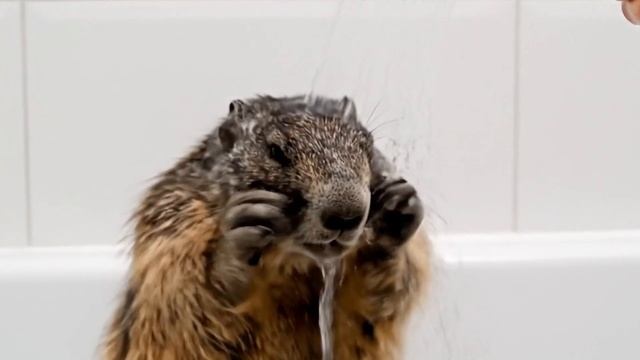 сурок купается Любимый день сурка сурок моется в душе Сурок ест мороженное смотреть видео как сурок принимает душ