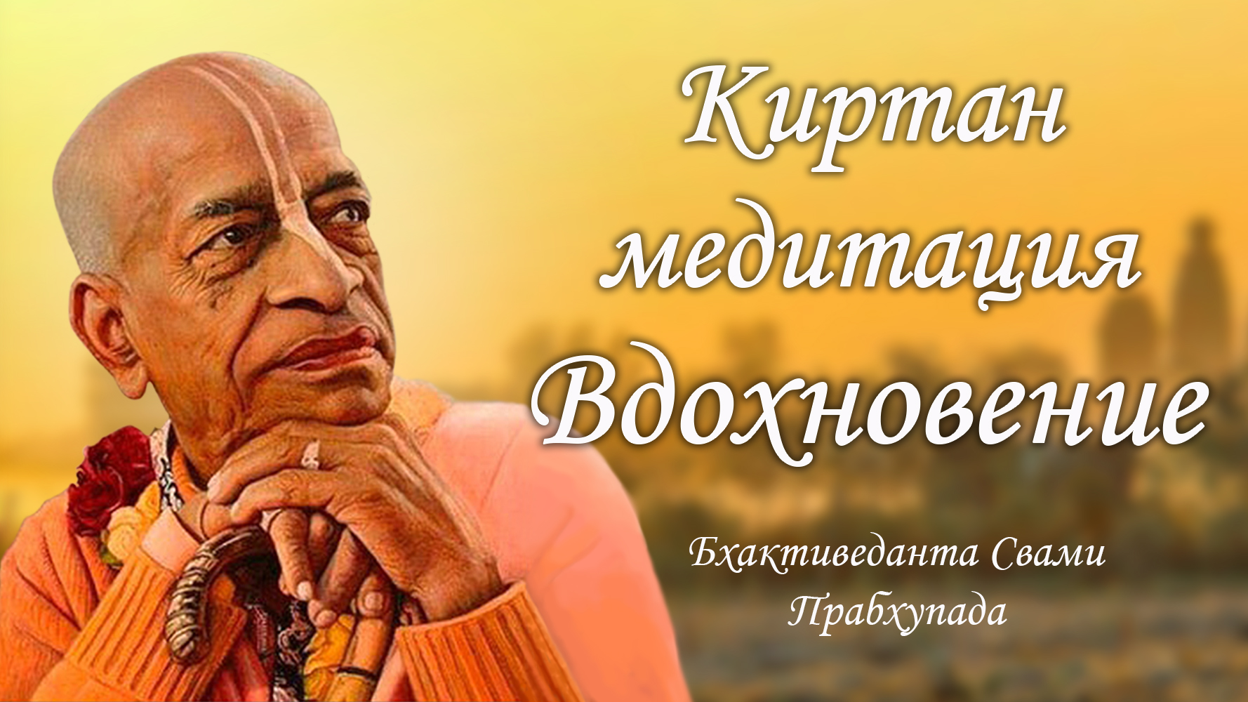 Святое имя Господа может очистить зеркало сердца и погасить пылающий огонь материального существования. Самореализация личности - это осознание ее истинной духовной природы. Лишь осознавая, кто мы, мы можем понять, где найти истинное счастье. Духовная по своей природе личность может обрести счастье лишь в духовной деятельности. Такой деятельностью является мантра медитация - практика слушания и повторения трансцендентных звуков, которые нисходят из духовного измерения. Мантры абсолютно духовны и являются идеальным объектом для медитации. Киртан медитация - это практика как для начинающих, так и для продвинутых. Чем больше духовного опыта мы получаем с практикой медитации, тем больше нам открывается трансцендентный мир, полный настоящей любви и умиротворения. Как медитировать дома для начинающих: найдите место, где вас никто не будет беспокоить, выберите удобное положение тела, предпочтительно сидя или стоя, чтобы вы не заснули. Включите трансцендентные звуки мантр и внимательно слушайте. Сосредоточьте свой ум на звуке. Подпевайте вслед за ведущим. Важно сделать свою практику медитации регулярной. Уделяйте медитации 15 мин каждый день, и вы заметите удивительный эффект. Как видите, техника выполнения трансцендентальной медитации не сложна. Это очень простая медитация, но в то же время очень эффективная. Это подходящая медитация для начинающих, а так же для тех, кто практикует медитацию продолжительное время. Слушая этот воодушевляющий бхакти киртан в исполнении Его Божественной Милости А.Ч. Бхактиведанты Свами и его друзей, вы можете смыть все беспокойства с ума и испытать духовное счастье. О Его Божественной Милости Шриле А.Ч. Бхактиведанте Свами Прабхупаде: А.Ч. Бхактиведанта Свами Прабхупад, истинный духовный учитель нашего времени, родился 1 сентября 1896 года в скромном доме в Калькутте и получил имя Абхай Чаран, «Бесстрашный у стоп Господа». В 1922 году, когда он впервые встретил своего духовного учителя, Бхактисиддханту Сарасвати Тхакура, тот попросил его распространять послание духовного знания на английском языке. С 1950 года Бхактиведанта Свами жил в священном городе Вриндаване, комментируя и переводя санскритское писание «Бхагавата-пурана» (Шримад-Бхагаватам) и другие. Святой человек, в 1965 году, несмотря на преклонный возраст, выполняя наказ своего гуру, отправился на Запад, чтобы дать совершенное духовное знание о Всевышнем нуждающимся в Нем людям Запада, живущих в условиях материализма, лишенных знания Вед, не осознающих разницу духа и материи, и не знающих об истинной самореализации личности. Он показал в своих книгах трансцендентный мир, научил, как медитировать на трансцендентные звуки и показал, как найти духовное решение всех проблем. Он дал людям Запада лучшую духовную практику, заключающуюся в медитации на имена Бога. Так, благодаря Бхактиведанте Свами Прабхупад, истинному учителю бхакти йоги, и по милости Верховной Личности Бога, воспевание Святых Имен распространилось по всему миру. Мантры, используемые в наших киртанах, это вайшнавские мантры, несущие благо всем живым существам. ДЖАЯ РАДА МАДХАВА КУНДЖА БИХАРИ ГОПИ ДЖНАНА ВАЛАБХА ГИРИВАРА ДХАРИ ЯСОДА НАНДАНА ВРАДЖА ДЖАНА РАНДЖАНА ЯМУНА ТИРА ВАНАЧАРИ Кришна - возлюбленный Радхи. Он являет Свои развлечения в рощах Вриндавана. Он - возлюбленный гопи
