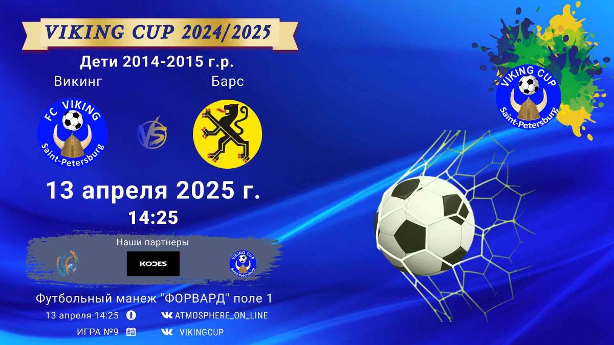 VIKING CUP среди команд 2014-2015 г.р. (U10-U11), Поле 1 13 апреля 2025 САНКТ-ПЕТЕРБУРГ, ФЦ "Форвард" ФК "Викинг" - ФК "Барс"/VIKING CUP, Игра №9, 13-04-2025 14:25