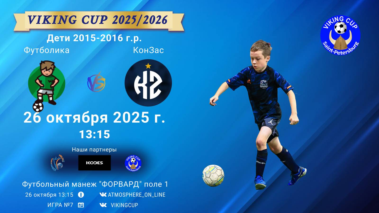 VIKING CUP среди команд 2016 г.р. (U9), Поле 1 26 октября 2025 САНКТ-ПЕТЕРБУРГ, ФЦ "Форвард" ФК "Футболика" - ФК "КонЗас"/VIKING CUP, Игра №7, 26-10-2025 13:15