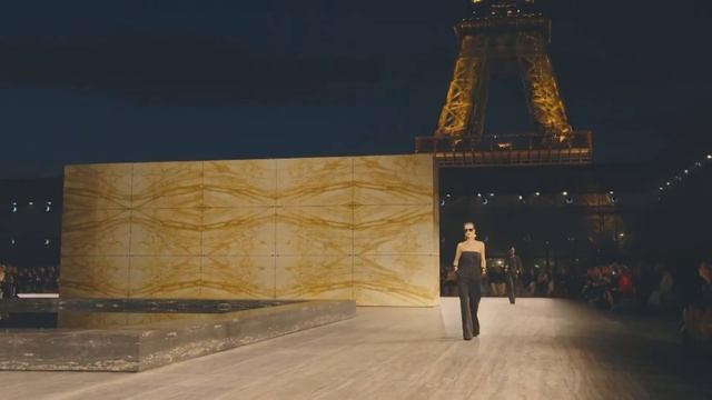 Коллекция Saint Laurent весна-лето 2024, представленная на фоне культовой Эйфелевой башни, построенная на простых и понятных силуэтах, в основе которых определённо читается стиль сафари. Мода в Париже.
