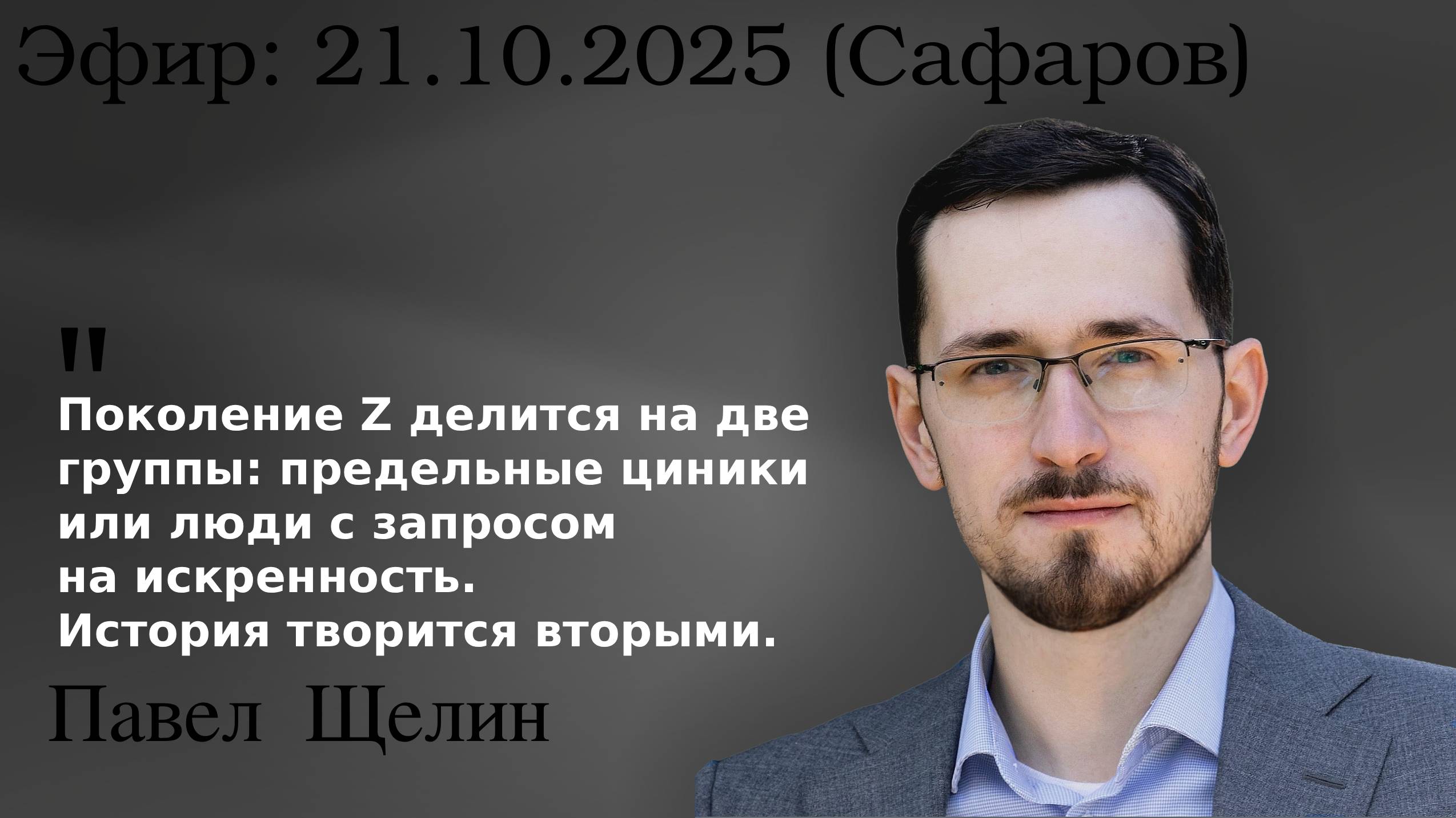 Павел Щелин и Руслан Сафаров разбирают главные тренды геополитики: сепаратные переговоры США и России, тайную встречу Ватикана и Лондона, крах Вестфальской системы и рождение нового мирового порядка. Почему Европе грозит самоубийство? Кто такие геодроны и почему революции Z — это технология будущего? И главное: почему единственная защита от ИИ и информационных войн — это настоящее доверие между людьми и государством. 1. ТЕЛЕГРАМ канал "Павел Щелин" https://t.me/common_sen 2. ТЕЛЕГРАМ группа подкаста "В поисках Смысла" https://t.me/+XPt11AiEdn9jYWZk 3. ВК сообщество и VKvideo канал "Павел Щелин" https://vk.ru/pavel_shchelin https://vkvideo.ru/@pavel_shchelin 4. YOUTUBE каналы "Павел Щелин" и "Эфиры с Павлом Щелиным" https://youtube.com/@pavelshchelin?feature=shared https://youtube.com/channel/UCQlcl6e4irYUvGJbyLrW1ow?feature=shared 5. Подкаст В поисках Смысла" на площадках https://paradoks-pinkera-pilotnyy-vypusk.simplecast.com/episodes https://open.spotify.com/show/5oZtcoyeaQ2ew0fUaIKseA https://music.yandex.ru/album/36170285?utm_source=desktop&utm_medium=copy_link