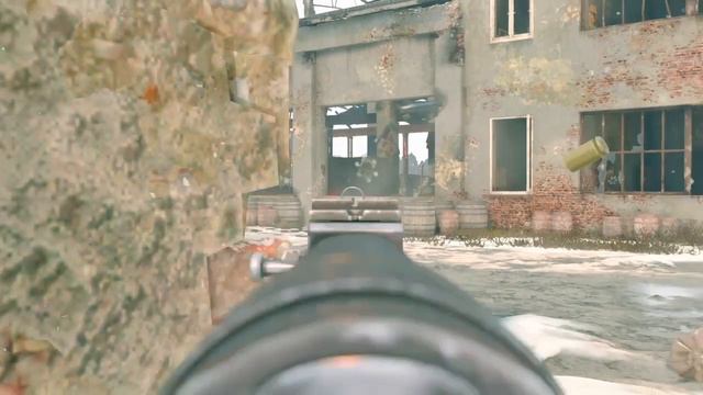 Enlisted: Wehrmacht Sturmgrenadier with MP 40 fire up on the enemy inside factory building