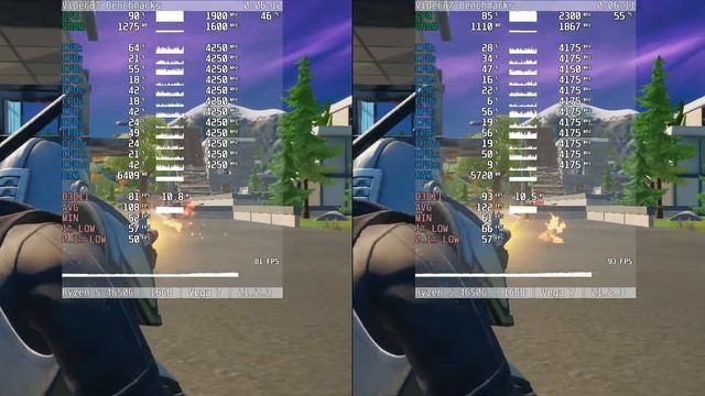 Device: Desktop PC CPU: AMD Ryzen 5 PRO 4650G @ Stock CPU2: AMD Ryzen 5 PRO 4650G @ Stock GPU: AMD Radeon Vega 7 @ Stock [1900mhz] GPU2: AMD Radeon Vega 7 @ 2300 MHz RAM: 2x8GB = 16 GB DDR4 3200 MHz CL16 Dual Channel RAM2: 2x8GB = 16 GB DDR4 3733 MHz CL17 Dual Channel SSD: Samsung 870 QVO 2TB SATA3 MB: MSI B450 GAMING PLUS MAX PSU: Antec EarthWatts 650W CPU Cooler: AMD Wraith Spire OS: Windows 10 64bit [2009/20H2] mod [GHOSTSPECTRE https://youtu.be/YQfoyzQjAPc] Driver: 21.2.3 Settings: 0:00 CS: GO [1080p Lowest] 1:44 MINECRAFT [1080p Fast 10 Chunks, Lite Shadres] 3:50 VALHEIM [720p Lowest] 5:35 FORTNITE [75% 1080p DX11 Low] Recording device: Avermedia Live Gamer ULTRA on second PC