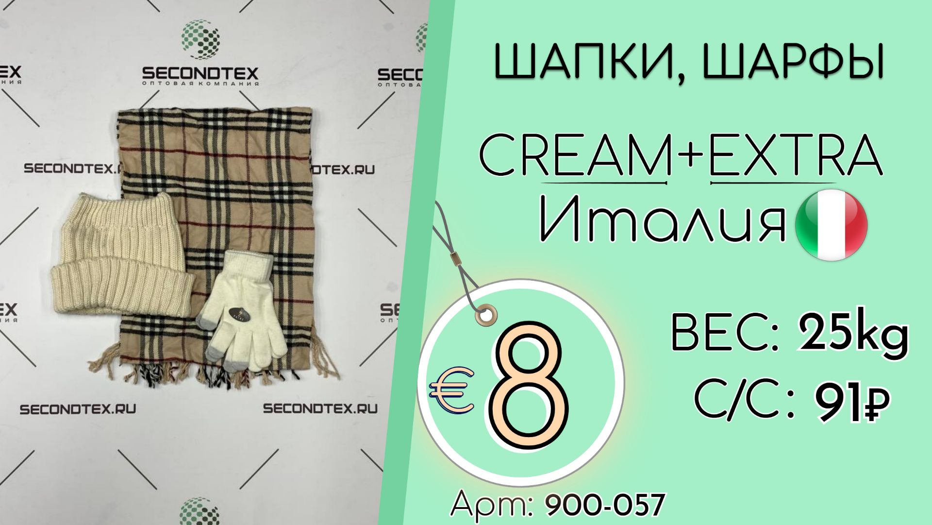 Бронь! 900-057 #3195 Аксессуары зимние. Шапки, шарфы Крем+Экстра Осень-зима Италия