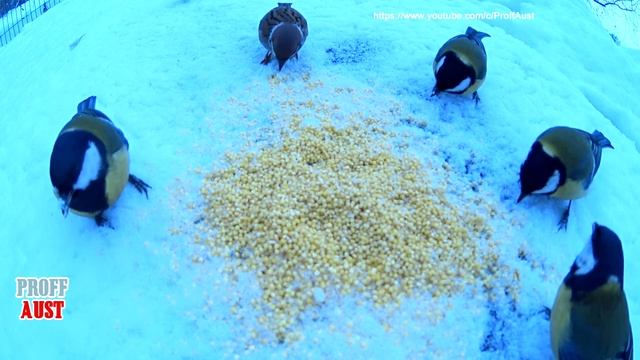 Синички и воробьи кушают на скрытую камеру. Документальный фильм.
