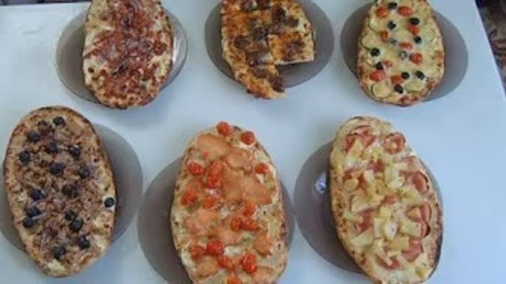 Тесто на 8шт 1кг муки 0,5ч.л пищевой соды 1ч.л соли 2 яйца 500 мл сильногазированной минералки 2-3 ст.л раст.масла Крем 200г сметаны 24% жирности 400г крем фреш 30% жирности 1ч.л лим.сока щепотка соли щепотка сахара щепотка чёрного молотого перца Начинка 1 ) ветчина, красный лук 2) кабачок, помидоры черри, оливки, сыр, оловковое масло 3) инжир, сыр, мёд 4) тунец, оливки, красный лук 5)красная рыба, помидоры черри 6) ветчина, картофель в мундирах 250 градусов, 8-10 мин
