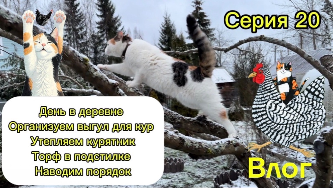 Серия 20. Влог. Строим выгул для кур, утепляем курятник, торф в подстилке . День в деревне .