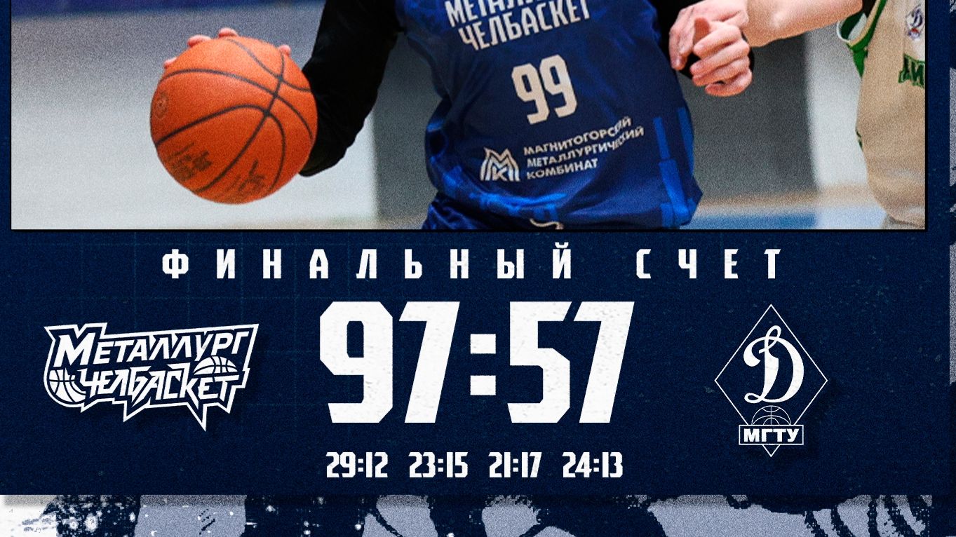 Группы команд в соц. сетях: «Металлург-Челбаскет» Челябинская область: https://vk.ru/bkmetallurg?from=groups «Динамо – МГТУ» Майкоп: https://vk.ru/bc_dinamomgtu Статистика матча: clck.ru/3QwTQZ Полное видео матча: https://vk.ru/video-45703242_456241915 Составы игравших команд: «Металлург-Челбаскет» Челябинская область: 1.Павел Метелев 7. Никита Грабарев 10. Валерий Колбин 11.Вадим Манайчев 14. Никита Перцев 21. Богдан Полищук 22.Александр Пуйда 24. Кирилл Воскобойников 29. Владислав Гаффаров 35.Григорий Скрынник 78. Станислав Сарафанкин 99. Даниил Юрков Тренер: Владимир Емельянов Помощник тренера: Антон Кохельников Помощник тренер: Евгений Борисюк «Динамо – МГТУ» Майкоп: 5.Даниил Чаленко 7. Алексей Медведев 10. Илья Зайцев 18.Вадим Ерин 24. Юрий Кочнев 34. Иван Потежный 37.Даниил Волков 38. Станислав Пиньчук 47. Александр Калашников 88.Кирилл Дербенев Тренер: Артем Гапошин Первая четверть: 29-12 «Металлург-Челбаскет» Челябинская область Вторая четверть: 23-15 «Металлург-Челбаскет» Челябинская область Третья четверть:21-17 «Металлург-Челбаскет» Челябинская область Четвёртая четверть:24-13 «Металлург-Челбаскет» Челябинская область Итоговый счёт:97-57 «Металлург-Челбаскет» Челябинская область Результативные игроки матча: «Металлург-Челбаскет» Челябинская область: Никита Перцев 18 очков, Даниил Юрков 17 очков, Георгий Скрынник 14 очков «Динамо – МГТУ» Майкоп: Иван Потежный 19 очков, Даниил Волков 9 очков, Александр Калашников 7 очков