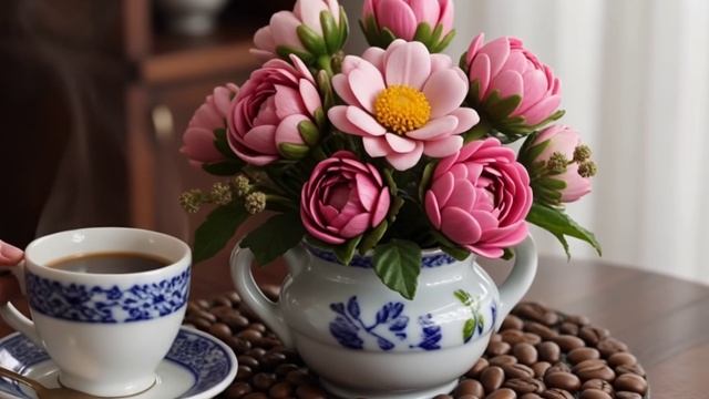 Футаж. Цветы в вазе. Кофе.