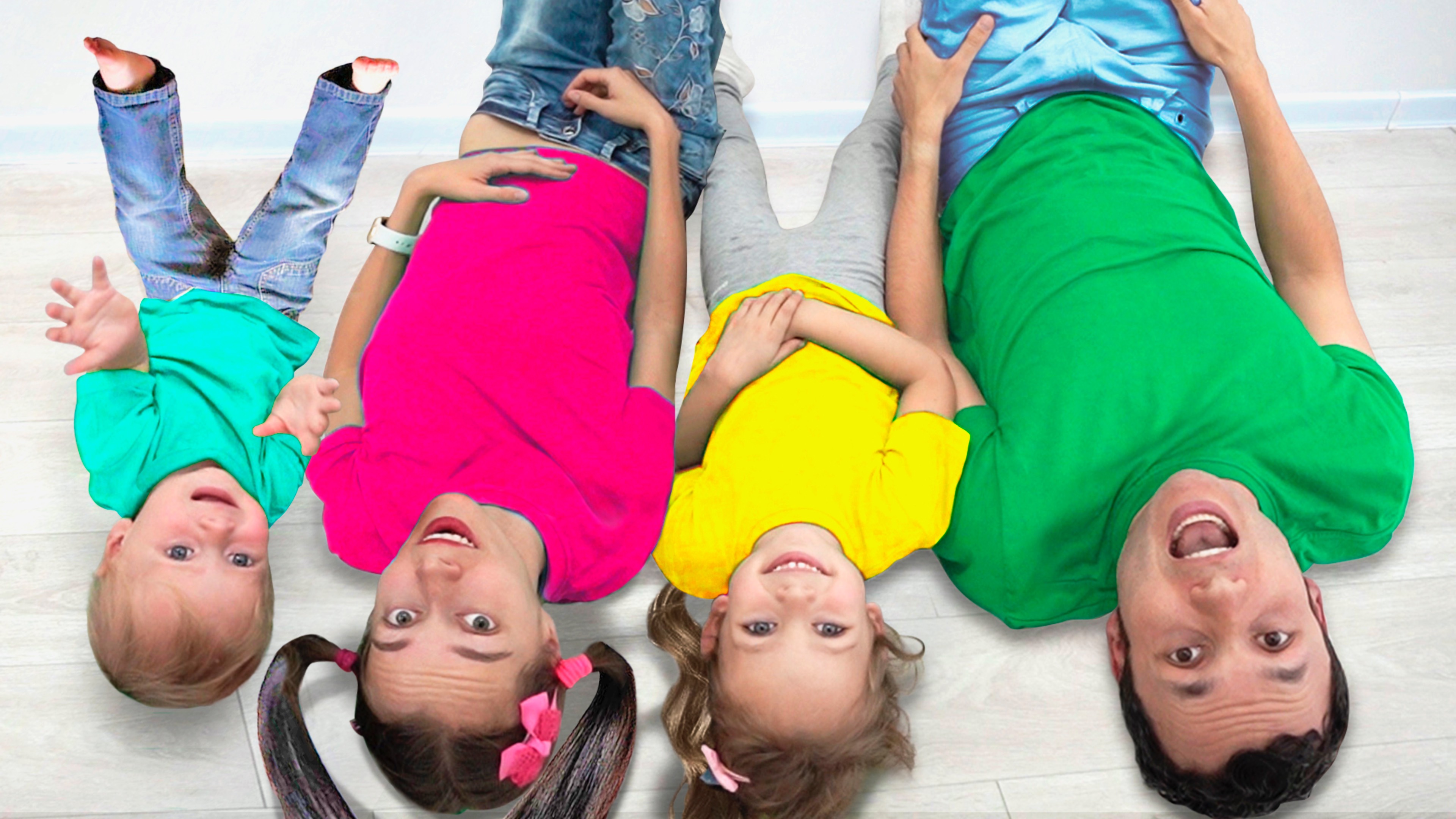 Папа и мама с двумя детьми весело проводят время , поют песню о цветах и танцуют !