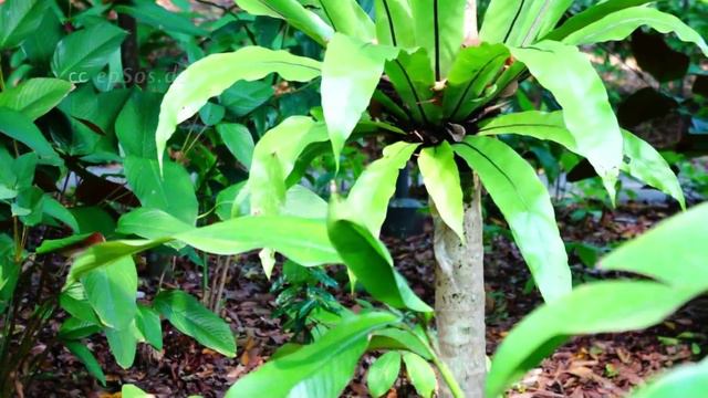 Free video about bird's nest fern. This free video was created for you by http://epsos.de and can be used for free under the creative commons license with the attribution of epSos.de as the original author of this bird's nest fern video. Thank you for supporting the creative commons movement !! Asplenium nidus is a species of fern in the family of Aspleniaceae. It is a fern medium sized, stocky, shiny leaves. It is native to the rainforests of New South Wales and Queensland in Australia along the Great Dividing Range, parallel to the East Coast of the country. Also you can find it in New Guinea, tropical areas of Southeast Asia and Africa, Tahiti and Hawaii. The larger specimens are given to northern Queensland (where they can achieve the amazing size of 22 dm high and 2 m wingspan), while the lowest would be in the central coast of New South Wales, although there are theories that suggest that the other second species is a different gene. Its common name is Fern "bird's nest" because of its shape. This name translates from English "Bird's Nest Fern," although it is also known as "Crow's Nest Fern" Fern = "crow's nest" for its ditintiva form when given free. The bird's nest fern is a perennial herbaceous plant. The fronds of nest fern are kurzstielig, broad, smooth, slightly wavy on the edge and shine in lush greenery. The plant is increasingly tight up to 1 meter tall and with age. The up to 50 cm wide fronds form a funnel crown in which is wafted earth gathers as in a nest from which the young leaves unfurl. Its natural distribution has the bird's nest fern in the rain forests of East Africa, tropical Asia, Australia and Polynesia. There he grows epiphytic on trees. As an indoor plant in pots it is popular. It is an epiphyte in its environment. It can be grown in highly aerated media loamy, slightly acidic. It is preferred continuously high humidity, a diffuse light and a temperature of about 20 ° C. The nest fern is an epiphytic, lithophytic or terrestrial fern with placed in bundles of 50 to 150 cm long, light green undivided leaves with a black center grain and wavy leaf margins. There is no difference between the sterile and fertile blades. The spores boxes are located in transverse rows on the underside of the blade, from the midrib to close to the blade edge. When the spores mature, the leaves roll up and form a huge brown nest among the branches of the trees. The nest fern lives mainly epiphytic plant trees where he water and humus collects in the cup formed by its leaves. He prefers warm and vochige place at least partially in the shade. It is found in tropical regions. These spikes are easily recognized because of a large canopy, entalnya can reach a length of 150cm and width 20cm, leaf resembles a banana. Peruratan single pinnate leaves. Color bright green leaves, and yellowing when exposed to direct sunlight. spores located on the underside of strands, the leaf veins, with sori covered in some sort of elongated sacs. Frond-ental which dries to form a kind of "nest" that ride on the branches of trees. "Nest" is that stores water and other epiphytic plants can be grown. These spikes mostly epiphytic, but actually can grow anywhere as long as there is organic matter that provides nutrients. Because the plants under the canopy, he likes shade. In Hong Kong, this type is protected by law. Paronychia can be planted both in supporting the stump, as well as directly in the pot, containing a light blend of land for epiphytes. Do not allow to dry out the root ball. Requires irrigation and fertilization during the growing season (from spring to early autumn). Semidarkness or solar. A temperature of 10 to 30 ° C. Epiphytes use photosynthesis and obtain moisture from the air or rain that is deposited on the surface of its host. Epiphytes not parasitize their host, but only grow independently obtaining physical support. The most obvious regarding other herbs restricted to the ground advantage is receiving more light on the shady ecosystems forest and kept away from herbivores. However so tight as to damage the host plant may develop. The best known epiphytes include mosses, lichens, orchids, ferns and bromeliads, but can be found in all major groups of the plant kingdom. Accumulations of large epiphytes occur most abundantly in tropical rainforests and temperate rainforests, but both lichens and mosses found in any environment with trees. Thank you for supporting the creative commons movement !!