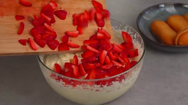 Друзья если вам понравился рецепт и хотите увидеть еще много интересных рецептов Подпишитесь Вы можете поделится этим видео с друзьями в соц.сети. Подпишитесь ! Оцените видео. Напишите комментарий или поставьте смайлик ! Мне очень важно знать Ваше мнение !!! список ингредиентов 500мл сливок 33%. 100 грамм сахарной пудры. 250 грамм маскарпоне. 400 грамм клубники. 250 грамм печенья. в холодильник 2-3 часа.