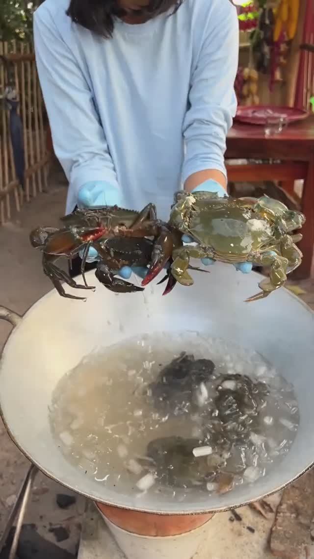 Приготовление огромных грязевых крабов с кувшинкой в деревенском стиле от шеф-повара Ка [(Cooking