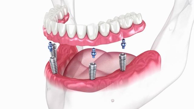 Протезы, поддерживаемые 4 имплантатами. 3D-анимация стоматологического протеза