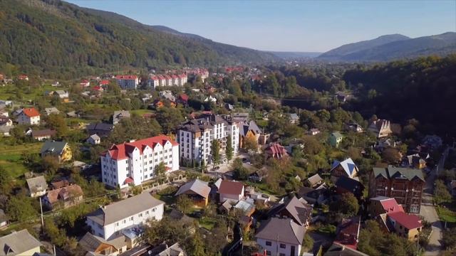 Аерозйомка новобудови в м. Яремче. Крайобраз апартаменти.