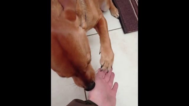 Очень приветливая собака.