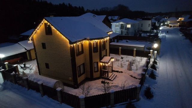 Подсветка фасада гирляндой бахрома | Тёплый свет и уютный дом | JOYLED