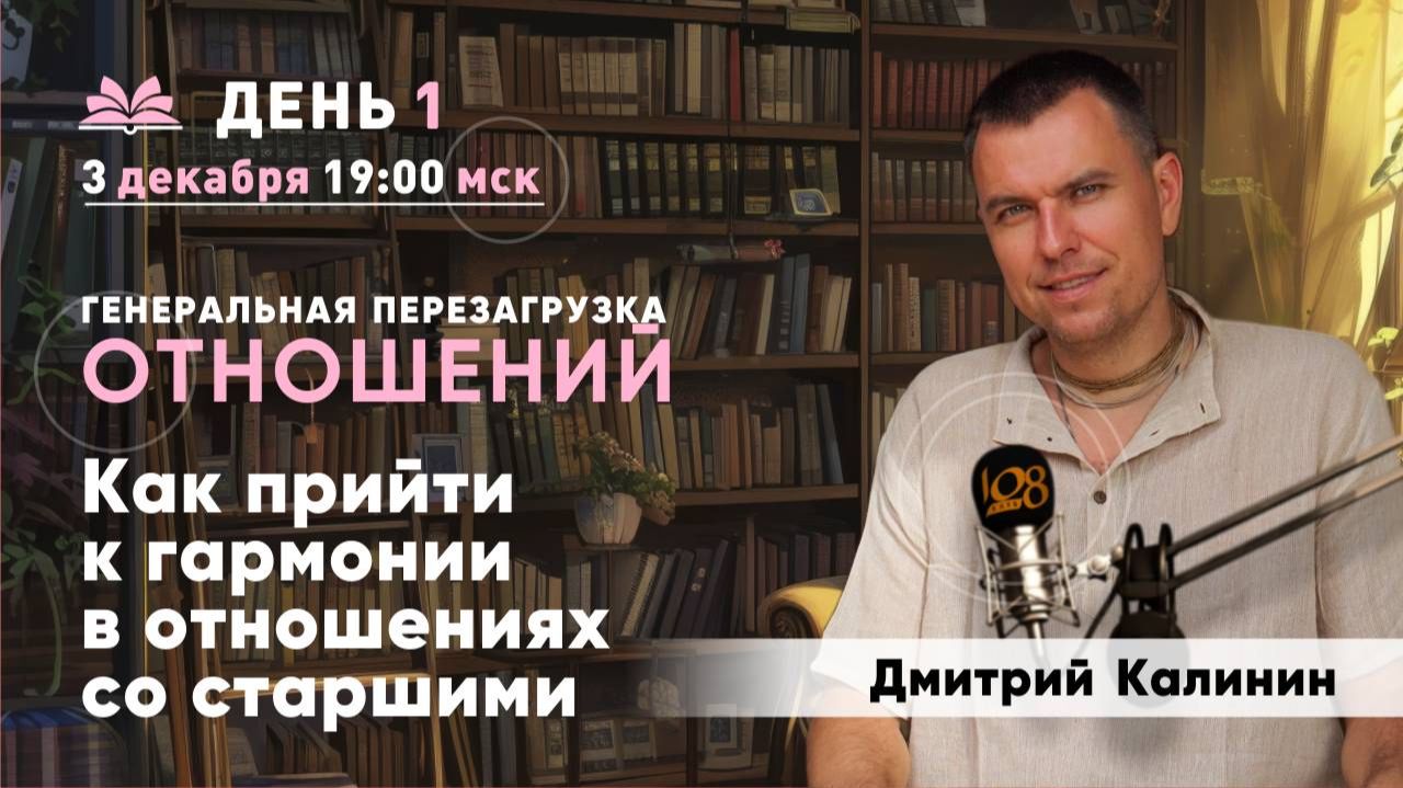 Первый день Интенсива "Генеральная перезагрузка отношений" День 1. Как прийти к гармонии в отношениях со старшими – получите верное понимание принципа иерархии в отношениях и уберете перекосы и подмены; – обретете ясное понимание, кто такие старшие и в чем их ответственность в отношениях с младшими; – узнаете, как быть гармоничным старшим (родителем, руководителем, наставником, тренером) и как правильно помогать младшим (детям, подопечным, сотрудникам); – поймете, что делать, если наши старшие не ведут себя, как старшие (родители, наставники, учителя в школе); – выясните, что делать тем, кому сложно принять принцип старшинства и авторитет. _______________________ На курсе БВП мы рассказываем о том, как можно, хотя бы немного применяя духовные знания, жить нормальной счастливой жизнью без излишнего стресса и тревожности в гармонии с окружающим миром. Запись на курс: https://bvp.club108.online Первый бесплатный урок: https://bvp.club108.online/1zbvp