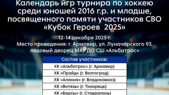 ХОККЕЙ. АЛЬБАТРОС Армавир - ВИТЯЗЬ Тихорецк