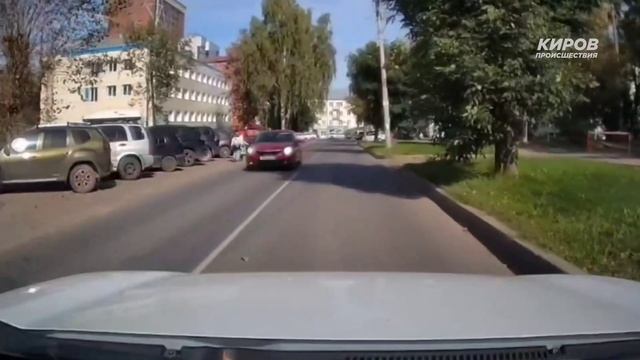 На улице Чапаева водитель машины с камерой едва не сбил двух школьниц. Девочки не посмотрели по сторонам и побежали через дорогу.