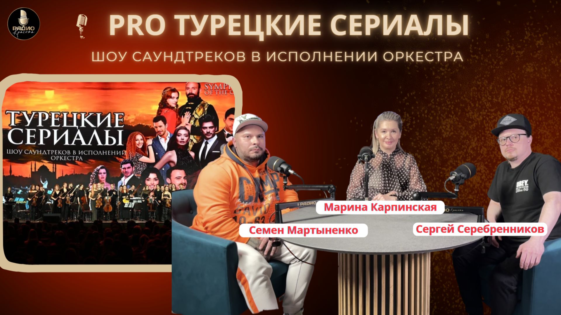 PRO ТУРЕЦКИЕ СЕРИАЛЫ, САУНДТРЕКИ В ИСПОЛНЕНИИ ОРКЕСТРА В гостях РАДИО КРАСОТА продюсеры "ШОУ САУНДТРЕКОВ В ИСПОЛНЕНИИ ОРКЕСТРА" Сергей Серебренников и Семен Мартыненко. Друзья давайте признаемся, если посмотрела хоть один турецкий сериал — остановиться невозможно. А какая у них музыка! И, внимание, — теперь можно увидеть самые трогательные моменты на большом экране и услышать любимые саундтреки в исполнении целого оркестра! 2.12.2025 концерт пройдет в Концертном зале "ИЗМАИЛОВО" Сергей и Семен приглашают не только поклонников турецких сериалов, но и всех любителей качественной музыки. Следить за расписанием и турне шоу можно перейдя на страницу организаторов. https://vk.com/symphony_of_the_cinema https://argentum-music.ru/turkish-serials Симфонический оркестр исполнит музыку из: «Великолепный век», «Клюквенный щербет», «Ветреный», «Королёк-птичка певчая», «Зимородок», «Чукур», «Черная любовь», «Постучись в мою дверь», «Лейла», «Дикий» и других хитов турецкого кино. Ибрагим Паша или Сулейман, Ферит Корхан или Серкан Болат, Нихан или Хюррем, Дуа или Омер — кого бы вы не предпочитали, это шоу станет незабываемым. Ставьте лайки и подписывайтесь во всех наших социальных сетях https://taplink.cc/radiobeauty