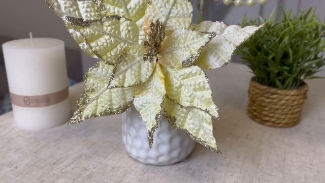 Пуансеттия ЗВЁЗДНАЯ НЕЖНОСТЬ на клипсе, шампань, 18х20 см, 1069122