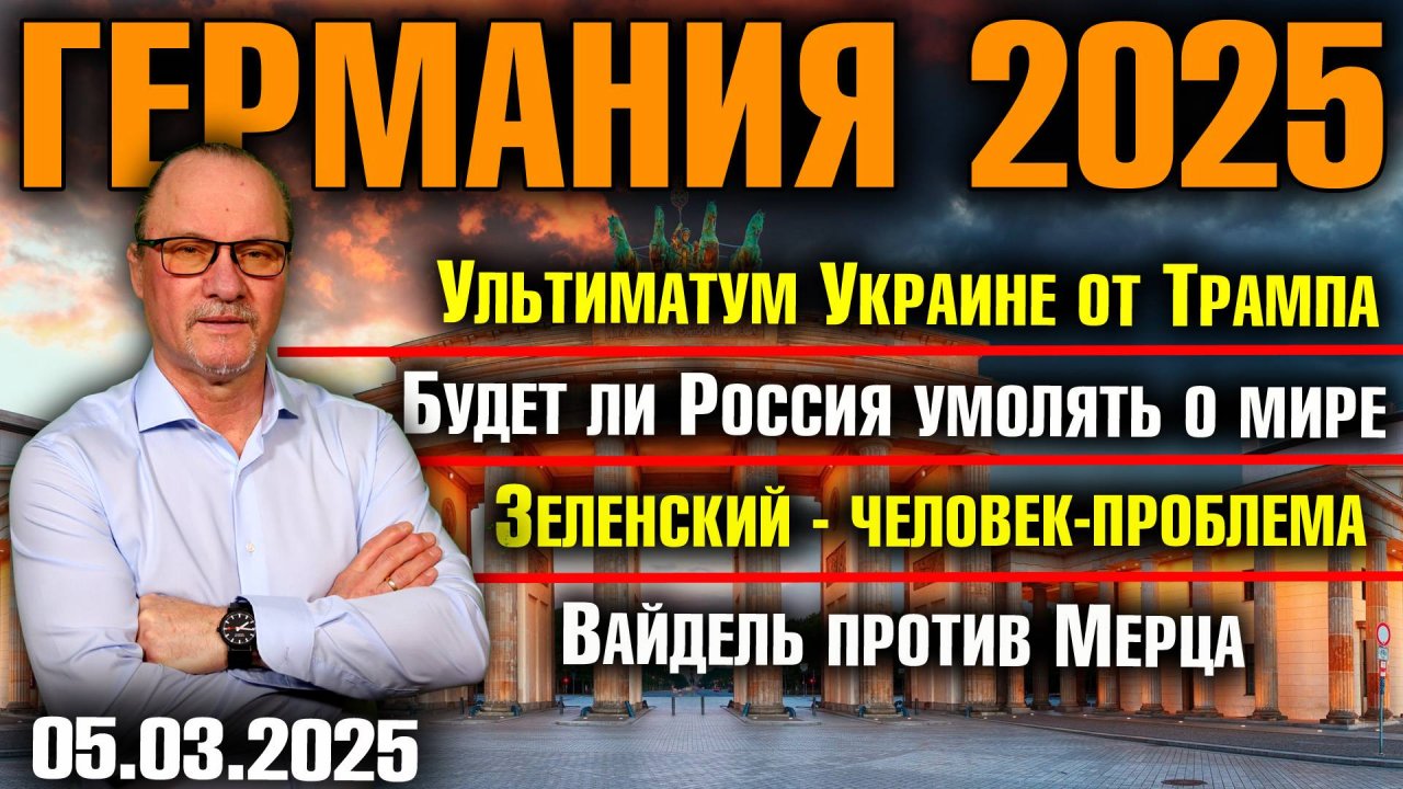 Ультиматум Украине/Зеленский - человек-проблема/Вайдель против Мерца/Украинцы остаются в Германии