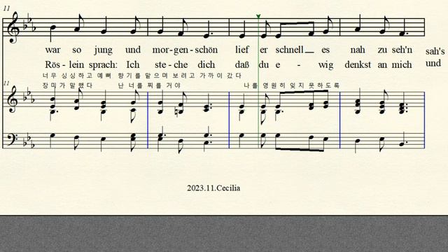 반주 동영상 Music by Heinlich Werner 베르너 Text by Johann Wolfgang von Goethe 괴테 https://cafe.naver.com/muse6443/1257 Heidenröslein 베르너 들장미 1829년 작곡 Same Text Music by F. Schubert 같은 가사 슈베르트 들장미 1815년 작곡 Original Eb major 내림마장조 악보 가사해석 추가정보 Naver Cafe : Cecilia Musicnote