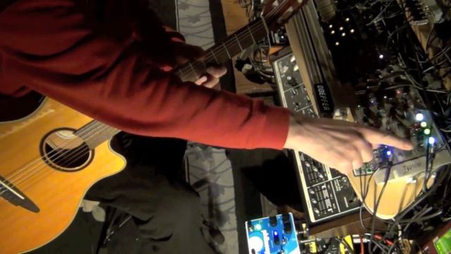 Yamaha APX5NA to Pictronix Philosopher King (Trigger in by Peg) to Doepfer A 119, 2x A 101-2 (pan) - ~ + 4ms Peg, QCD/Expander², RCD², VCA Matrix Analogue Systems RS 100², RS 110²², RS 360 Bananalogue Serge VCS Cyndustries Zeroscillator Doepfer R2m, A101-2², A 117, A131², A133², A134²², A 141,A143-1,2,9,A151²², A 152, A156² A175²²², A185-2(14x), A138m,a²²b²²c²²² Flame 4Vox, Arpeggiator (locrian chords), Chord Machine², Q Slider², Tame Machine (Locrian), Talking Synth Module foh choices Make Noise Brains ,PP², Maths², Moddemix²², Optomix, QMMG, Wogglebug² Malekko Anti²², Unkle²², Jag Moog Taurus 2, Freqbox²²,CP251, MP 201 Oberheim Sem Roland System 104 Sequencer SSL Modulation Orgy Toppobrillo Quantimator² (locrian), Sportmodulator Kenton Pro 2000 FX: Boss RV5², VF-1, BSS DRP 402, Lexicon MX 400 Roger Linn Adrenalinn 2 Alesis Metavox Vocoder ~ Philtre mackie the mixer³ drums Ultrabeat vid # 1738