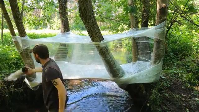 Сооружаем удивительное укрытие над ВОДОЙ из полиэтиленовой пленки для ОТДЫХА в ЛАГЕРЕ BUSHCRAFT TENT