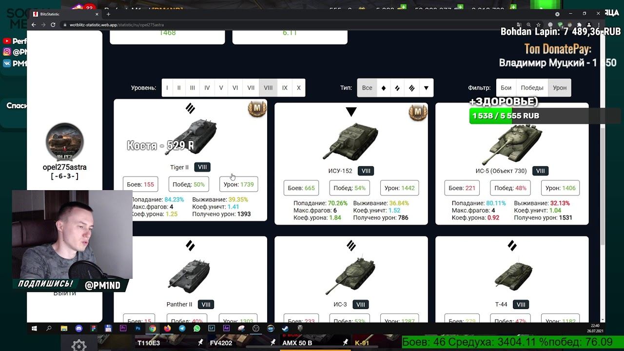 ШИФРЫ - https://cutt.ly/iQrA3bb Поддержать канал или задать вопрос - https://www.donationalerts.com/r/pm1nd https://donatepay.ru/don/pm1nd ✔️Через донат можно не только задать вопрос, но еще и: - прокатить определенный танк - 152р - чек статы в конце стрима(=150р). Сразу после боя - 300р. - поставить музыку на стрим - 200р - взвод на пару каток (обычно 3, если есть очередь) - 200р Для тех кто действительно хочет помочь: - удалить танки на неделю - 100 000р - приехать в ваш город (РФ) и удалить танки ВАМ (под ключ со всех устройств) - 150 000р Мой второй канал по Большим танкам, в будущем ТКМ и про тачки - https://www.youtube.com/channel/UCkX7Sy9t3DSYa1V6u441HbQ Вступить в семью интеллигентных танкистов или просто спонсорка (смайлы + выделение в чате + бонусы + ты помогаешь ютубу продвигать мой канал очень сильно) - https://www.youtube.com/channel/UCmKYhDzvo9DrX2em0AOSQJA/join Шпаргалка Танкиста - https://cutt.ly/nQwlwOz Топ Годных Премов - https://cutt.ly/mQwlqs9 Реплеи слать сюда - pm.blitzreplay@gmail.com По вопросам сотрудничества, пиар канала, реклама в сообществе - PM1ND@hmd.one ИНСТАГРАМ (отвечаю в ЛС) - https://www.instagram.com/pm1nd Группа ВК (вступаем) - https://vk.com/pm1nd Телеграм PM1ND - https://t.me/pm1nd Страница ВК (добавляемся в друзья) - https://vk.com/id10179989 Discord - https://discord.gg/vDNnXh6 Обучение по картам - https://www.youtube.com/channel/UCD7aNsZhb79WpRd4RNh5X0A Играю с iPad Pro 11" 2018 64gb. Характеристики ПК есть в инстаграме. В игре бан чата, поэтому не могу ответить. :( Стримлю через OBS и X-Mirage. Виджет статы - https://widget.pythonanywhere.com/ #стрим #wotblitz #вотблиц #wot #WorldOfTanksBlitz #WorldOfTanks #PM1ND