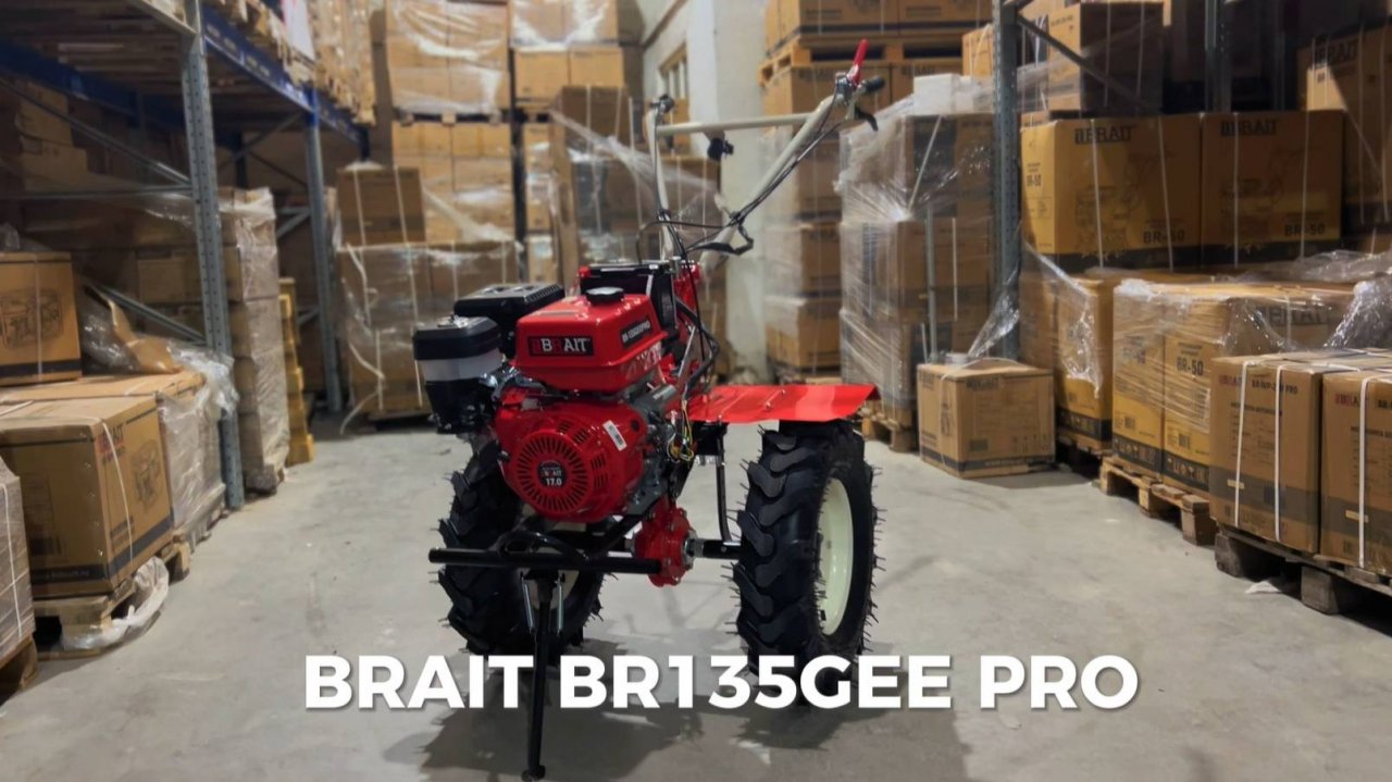 МОТОБЛОК BRAIT УНИВЕРСАЛЬНЫЙ СОЛДАТ, СПОСОБНЫЙ РЕШАТЬ ЦЕЛЫЙ СПЕКТР ЗАДАЧ Мотоблок бензиновый BRAIT BR-135GEEPRO_011 техника, которая используется для культивации, освоения целины, посадки различных культур, газонами и грядками, сбора урожая, а так же мотоблок используют для уборки снега. Важная особенность этой модели – чугунный редуктор. Он рассчитан на длительную интенсивную эксплуатацию. Надежный мотор. Двигатель мощностью 17 л.с. легко справляется с обработкой почв любого характера, включая целинную. Наличие сошника. Позволяет регулировать глубину обработки земли для посадки разных культур. Задняя передача. Пригодится, если надо развернуться или освободить застрявшую оснастку из почвы. Защитный щиток. Предотвращает случайные попадания комьев земли в оператора при работе. Комфортное управление. Рукоятка с возможностью регулировки делает управление более комфортным. Крылья. Предусмотрен щиток, который предотвращает попадание земли на оператора. ПРЕИМУЩЕСТВА: РУЧНОЙЭЛЕКТРОЗАПУСК. Обладает не только привлекательным дизайном , но и выдающимся характеристиками. Мощный четырехтактный двигатель BRAIT надежен в эксплуатации. 3 скорости вперед ( первая из них понижающая ) и 1 назад позволяют комфортно работать на любых типах почвы. Надежное дисковое сцепление в масляной ванне. Вал отбора мощности (ВОМ) для дополнительного оборудования. Cамозатачивающиеся закаленные фрезы из конструкционной стали. Универсальная сцепка позволяет использовать различное навесное оборудование. Рукоять мотоблока с возможностью регулировки по вертикали и горизонтали делает управление более комфортным. Регулируемый сошник надежно фиксируется к раме мотоблока и отвечает за регулировку глубины вспашки. Закаленные фрезы прекрасно закапываются на полную глубину и способствуют продвижению мотоблока вперед. Пневматические колеса обеспечивают отличную проходимость. На корпусе предусмотрен щиток, защищающий оператора от попадания земли. КОМПЛЕКТАЦИЯ: Мотоблок бензиновый в сборе. Планка защиты передняя задняя. Рычаг переключения скоростей. Ступица колес. Ножи фрез. Ключ свечной. Комплект ключей. Крепления руля. Сошник в сборе. Вал фрезы. Колеса. Крылья. Поставляется в индивидуальной коробке. Артикул данного товара: 04.01.123.011 https://fdbrait.ru/sadovoe-oborudovanie/motoblok--benzinovij-br-135geepro--17l-s---jelektrostarter--kolesa-6-00-12-1-naz--3-vpered-s-valom-otbora-moshhn--val-s32-4sht-poddon