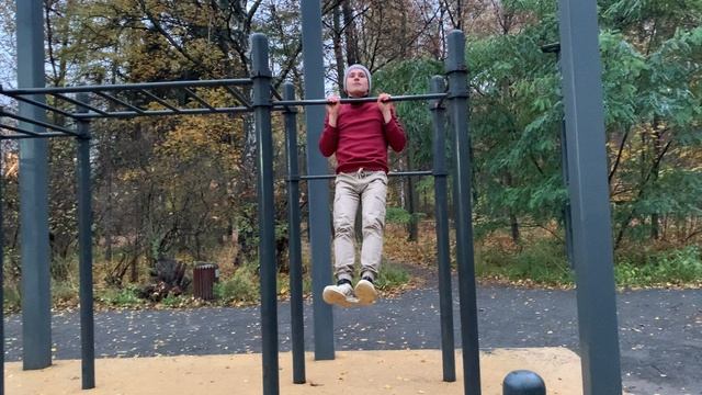 俄罗斯男子在莫斯科索科利尼基公园做引体向上,以成为一名更好的马拉松运动员 || 让我们一起努力吧 :)