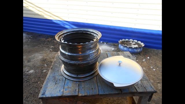 Печь для казана из автомобильных дисков. Строго не судите. Ещё учусь.