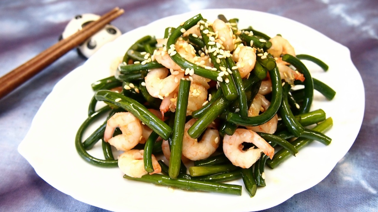 ДорамаКухня: Закуска из чесночных стрелок с креветками "Сэу маныль чон поккым" (새우마늘종볶음)