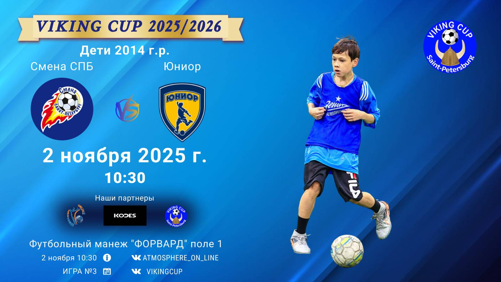 VIKING CUP среди команд 2014 г.р. (U11), Поле 1 2 ноября 2025 САНКТ-ПЕТЕРБУРГ, ФЦ "Форвард" ФК "СменаСПБ" - ФК "Юниор"/VIKING CUP, Игра №3, 02-11-2025 10:30