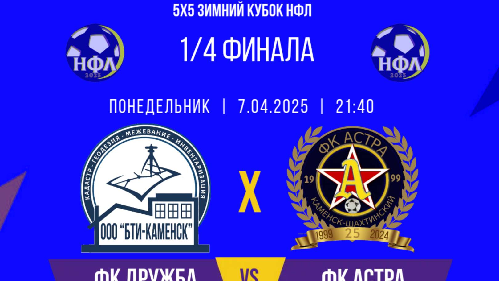 ЗИМНИЙ КУБОК НФЛ.5Х5.ФК"ДРУЖБА"-ФК"АСТРА".1/4 ФИНАЛА