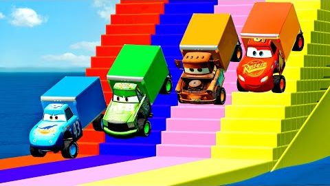 Грузовики и машинки McQueen против СТУПЕНЕЙ! САМАЯ ТЯЖЕЛАЯ ПОЛОСА! – BeamNG.Drive