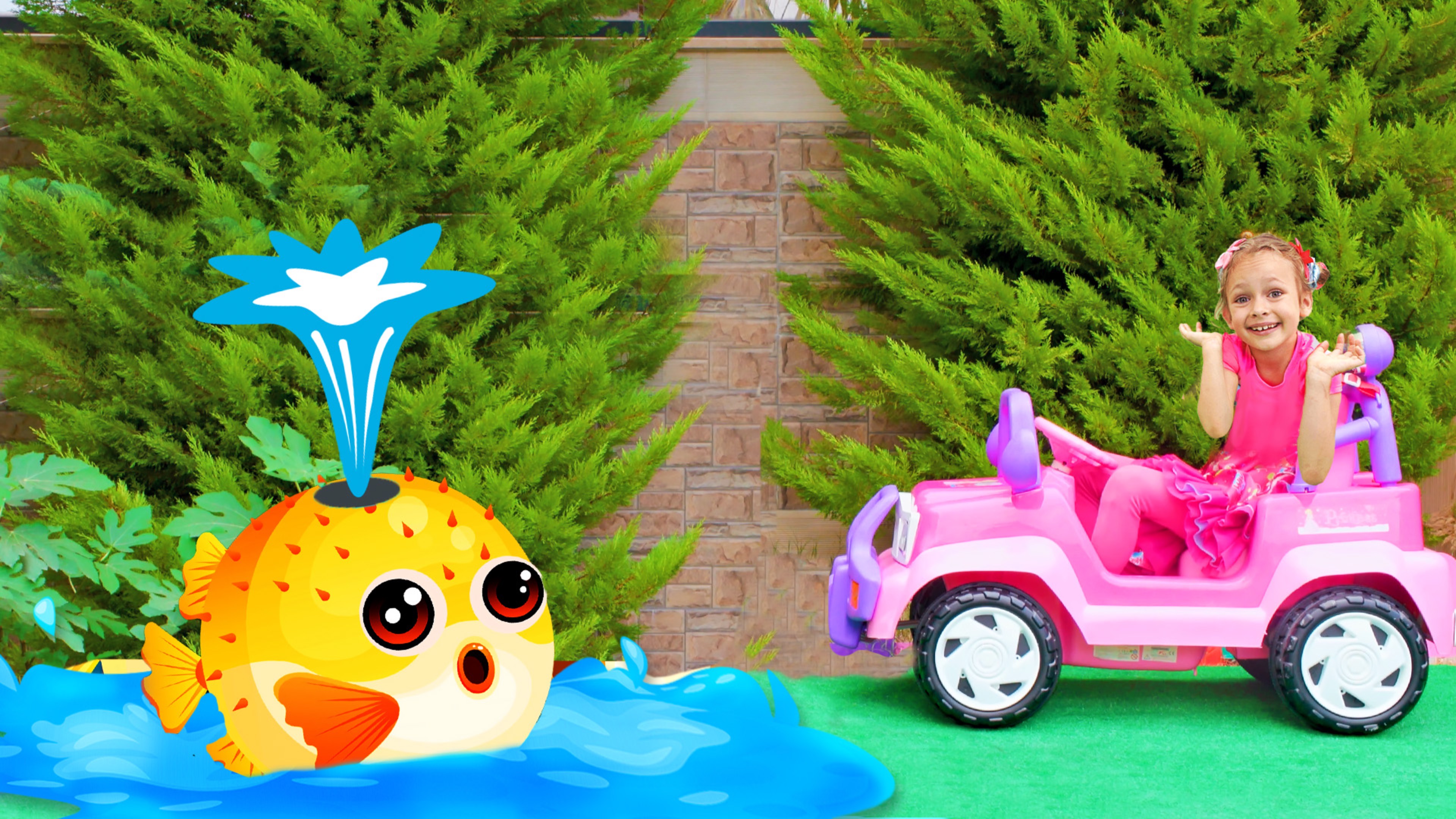 Майя и ее семья едут на машине и поют детскую песенку .