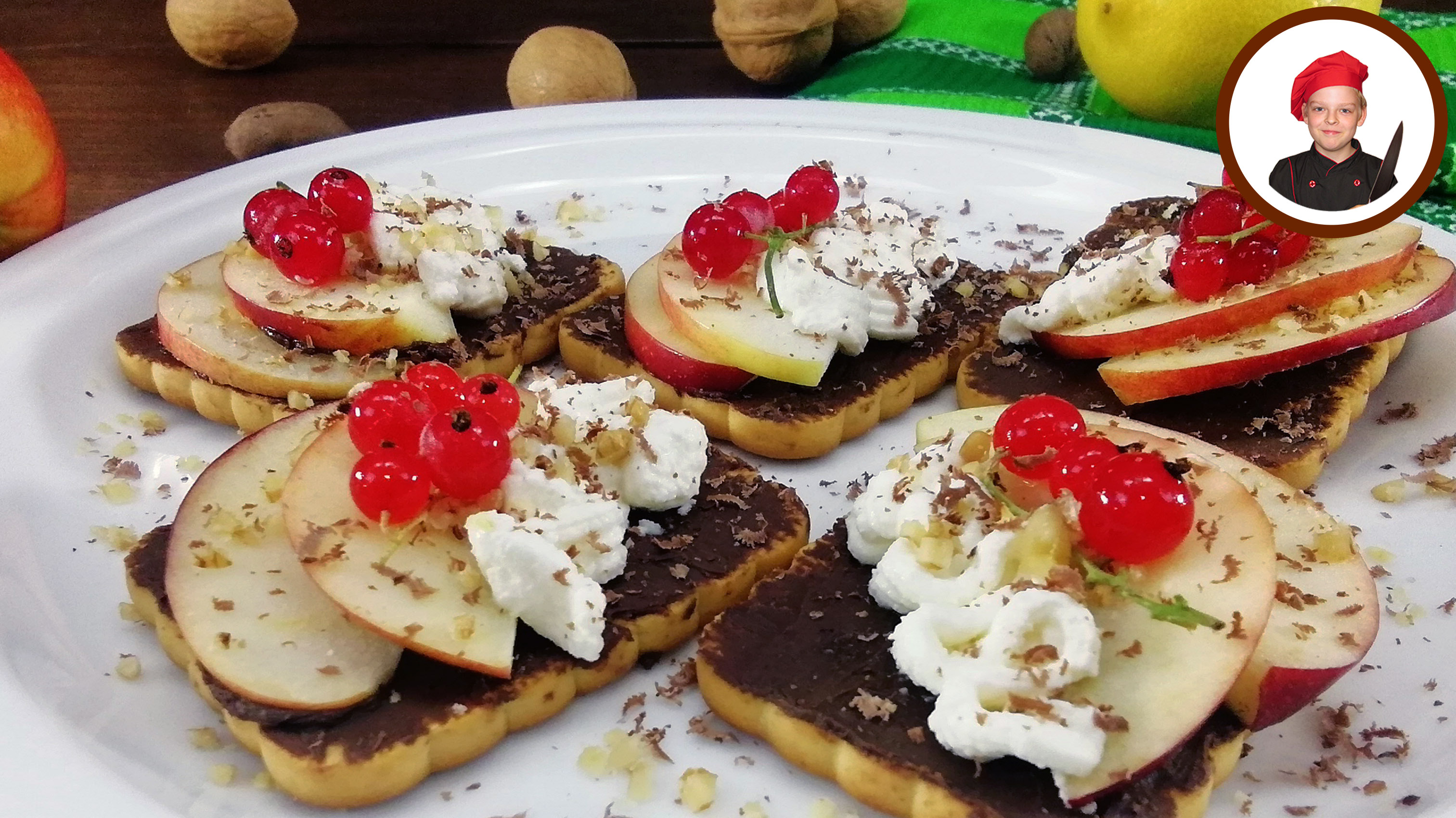 Творожное пирожное из печенья и творога. Быстро и вкусно. Ингредиенты: - Печенье (можно порезать кекс) -10 шт. - Ореховая паста или шоколадное масло - Яблоко - 1 шт. - Творог (или готовая сладкая творожная масса) - 100 г. - Ягоды (любые) на украшение - 20 г. - Гредский орех - 1 шт. - Шоколад - 20 г. #рецепты #пирожное #Апухтин #кулинария