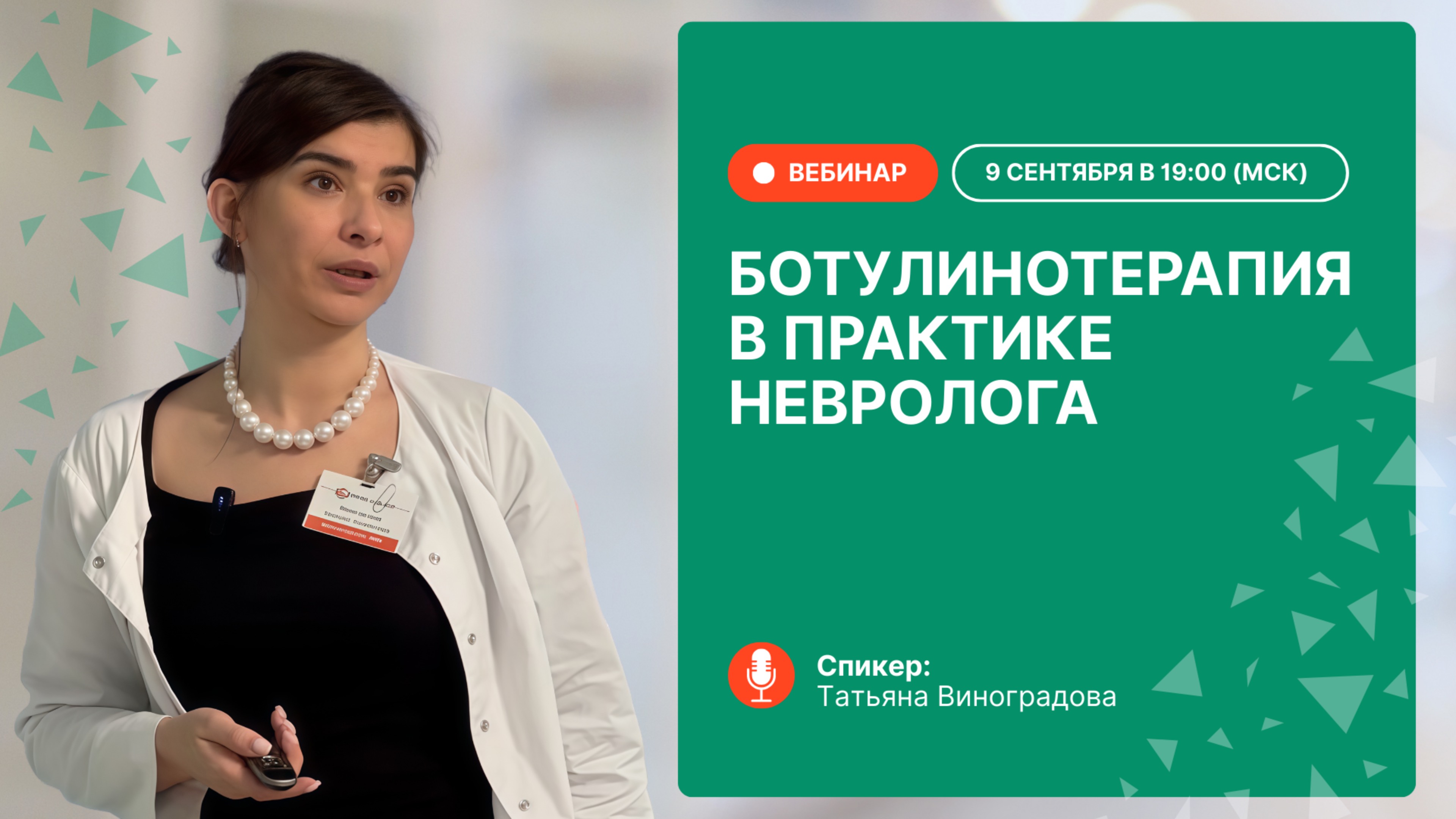 Вместе с Татьяной Виноградовой, кандидатом медицинских наук, врачом неврологом, цефалгологом, мы обсудили современные методы терапии мигрени, показывающие высокий результат. Программа вебинара 1 Пациент с мигренью. Что делать врачу, когда не работает профилактическое лечение 2 Как ботулинотерапия и моноклональные антитела доказали свою эффективность в терапии мигрени. разбираем случаи из практики 3 Основные показания к ботулинотерапии, включая лечение спастичности, дистонии, бруксизма, хронической мигрени 4 Почему врачу не надо бояться этих методов и что говорят клинические рекомендации 5 Как действуют моноклональные антитела в терапии мигрени 6 Как действует ботулотоксин и почему удается достичь стойкого эффекта 7 Как интегрировать терапию в клиническую практику 8 Как побороть страхи: страшно колоть, не знание дозировки, методики 9 Как строится обучение на нашем практическом курсе на базе клиники «Чудо доктор». Почему базовых знаний будет достаточно для начала применения в практической деятельности Татьяна – кандидат медицинских наук по двум специальностям – нервные болезни, патологическая физиология (2013 г.) Более 21 года практического опыта в ведущих медицинских организациях Москвы. Начните применять ботулонейропротеин в своей практической деятельности! До встречи на вебинаре! Следующие очные потоки курсов в Медиаторе на базе клиники «Чудо доктор» состоятся: ➡️Ботулинотерапия и моноклональные антитела в терапии мигрени Для врачей-неврологов. Очный курс на базе клиники «Чудо доктор». Практика 1 день + 4 дня на платформе. Выдаем удостоверение о повышении квалификации, 36 ак.часа. Прямой диалог с лектором. https://mediator-med.ru/terapiya-migreni ➡️Практика применения ботулинотерапии в лечении болевых феноменов, бруксизма и двигательных расстройств в области лица и полости рта Для врачей-неврологов и стоматологов. Очный курс на базе клиники «Чудо доктор». Практика 1 день + 4 дня на платформе. Выдаем удостоверение о повышении квалификации, 36 ак.часа. Прямой диалог с лектором. https://mediator-med.ru/bruksizm