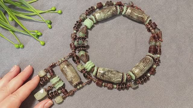 Мадейра. Парные чокеры из дерева, камней и металла #чокер #бохо #collar #boho #идеиукрашений