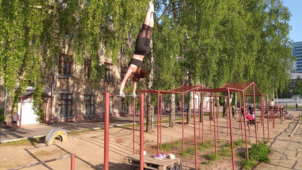 Девочка на турнике во дворе удивила обывателей!