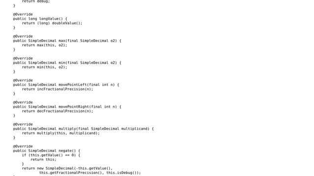 Code Review: BigDecimal made Simple - take 2 Helpful? Please support me on Patreon: https://www.patreon.com/roelvandepaar With thanks & praise to God, and with thanks to the many people who have made this project possible! | Content (except music & images) licensed under CC BY-SA https://meta.stackexchange.com/help/licensing | Music: https://www.bensound.com/licensing | Images: https://stocksnap.io/license & others | With thanks to user maaartinus (codereview.stackexchange.com/users/14363), user Germann Arlington (codereview.stackexchange.com/users/52331), and the Stack Exchange Network (codereview.stackexchange.com/questions/67160). Trademarks are property of their respective owners. Disclaimer: All information is provided "AS IS" without warranty of any kind. You are responsible for your own actions. Please contact me if anything is amiss at Roel D.OT VandePaar A.T gmail.com